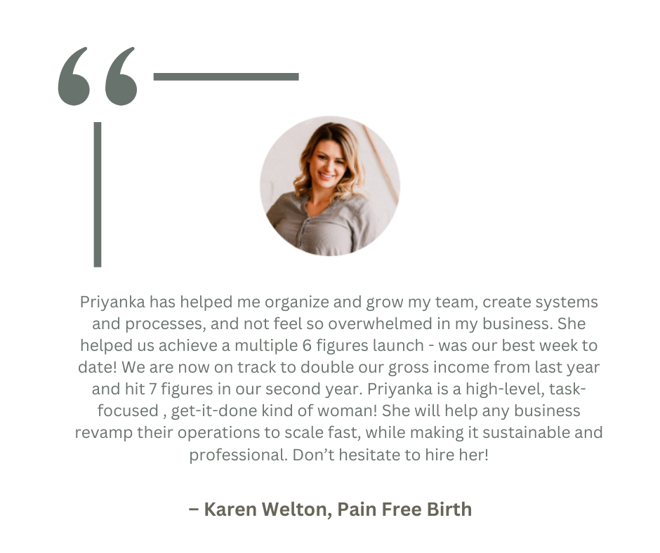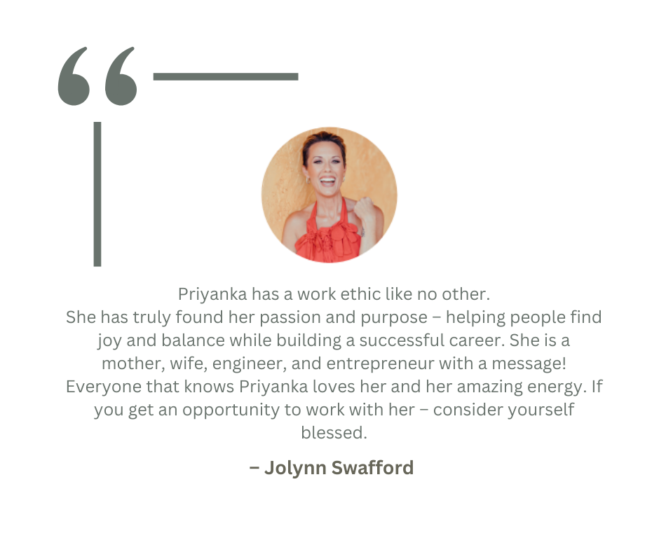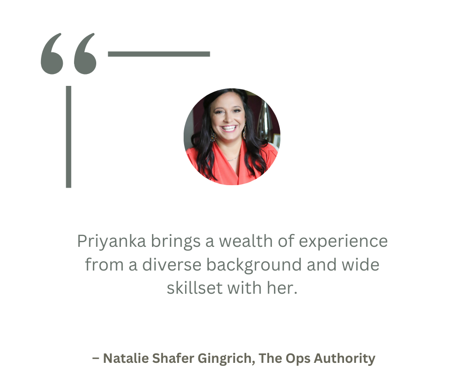 With over 12 years of corporate operations experience in Fortune 500 companies like Volkswagen and John Deere, plus a track record of helping clients generate 7-figure revenues, Priyanka built a powerhouse team to scale heart-centered and impact-driven online businesses to new heights.