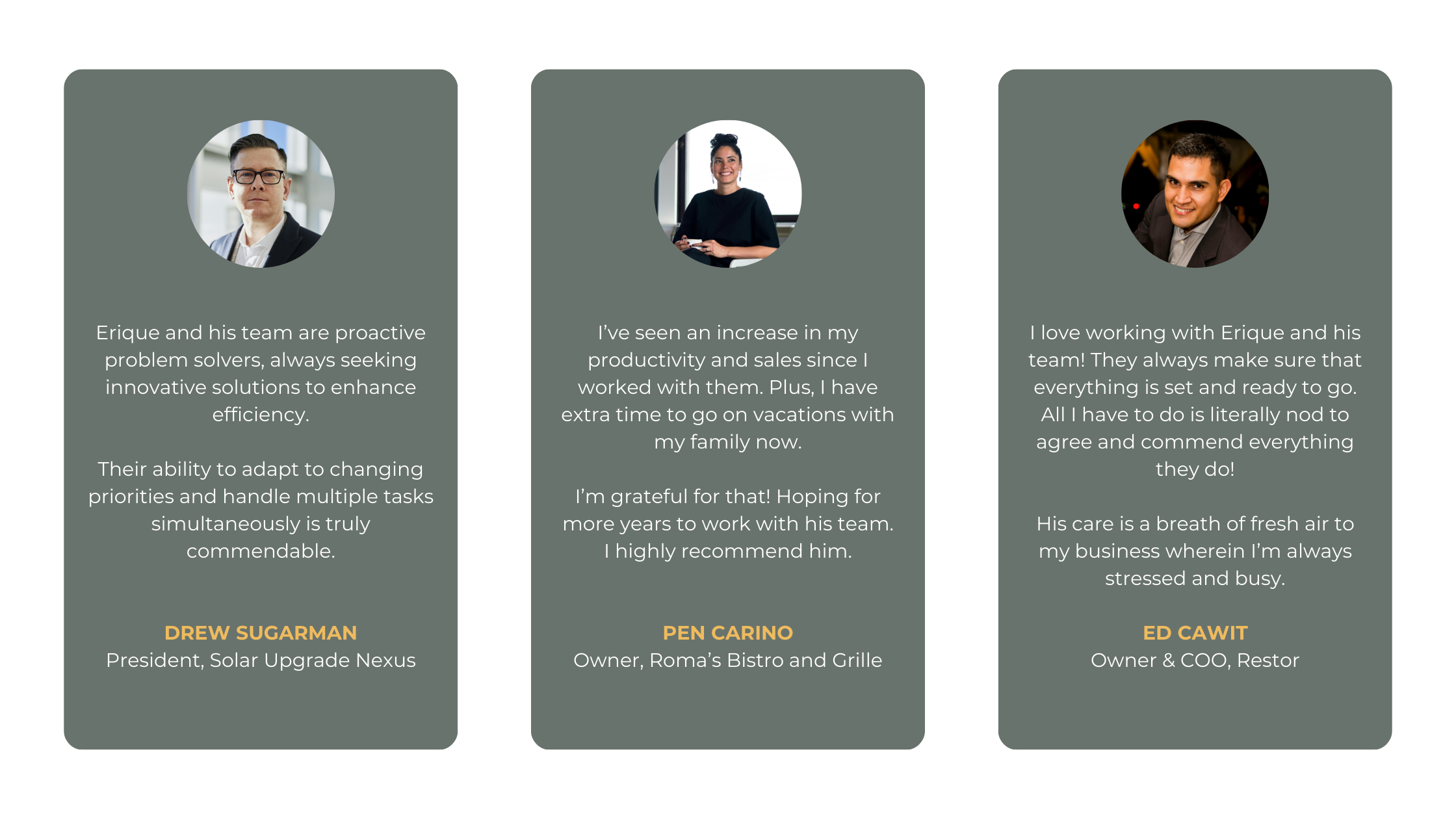 Whether it’s streamlining your systems, optimizing your team’s efforts, or scaling your revenue, our proven framework ensures every part of your business works together seamlessly. With our support, you can step confidently into your role as CEO, focusing on high-level strategy and growth while we handle the execution and operations.